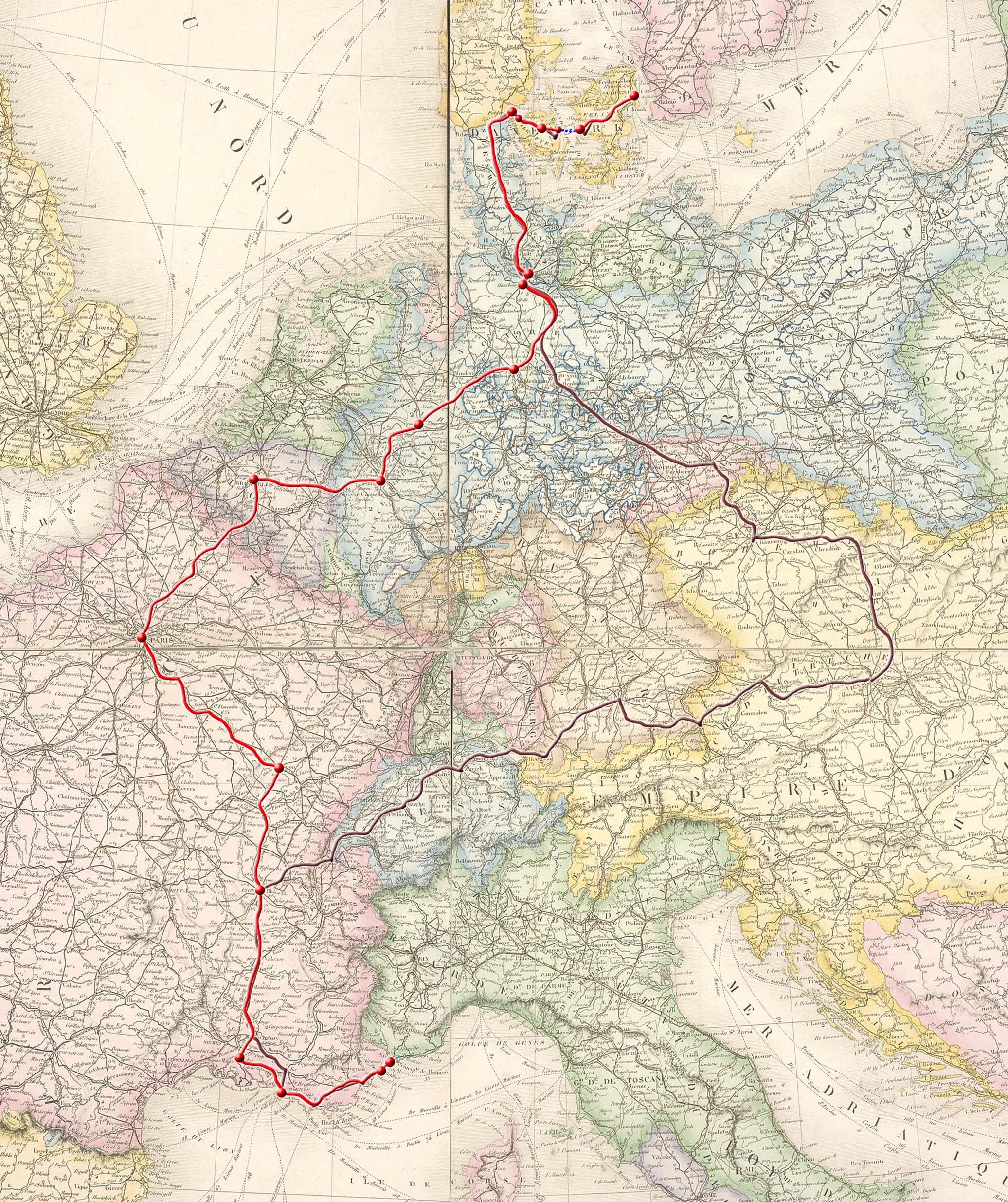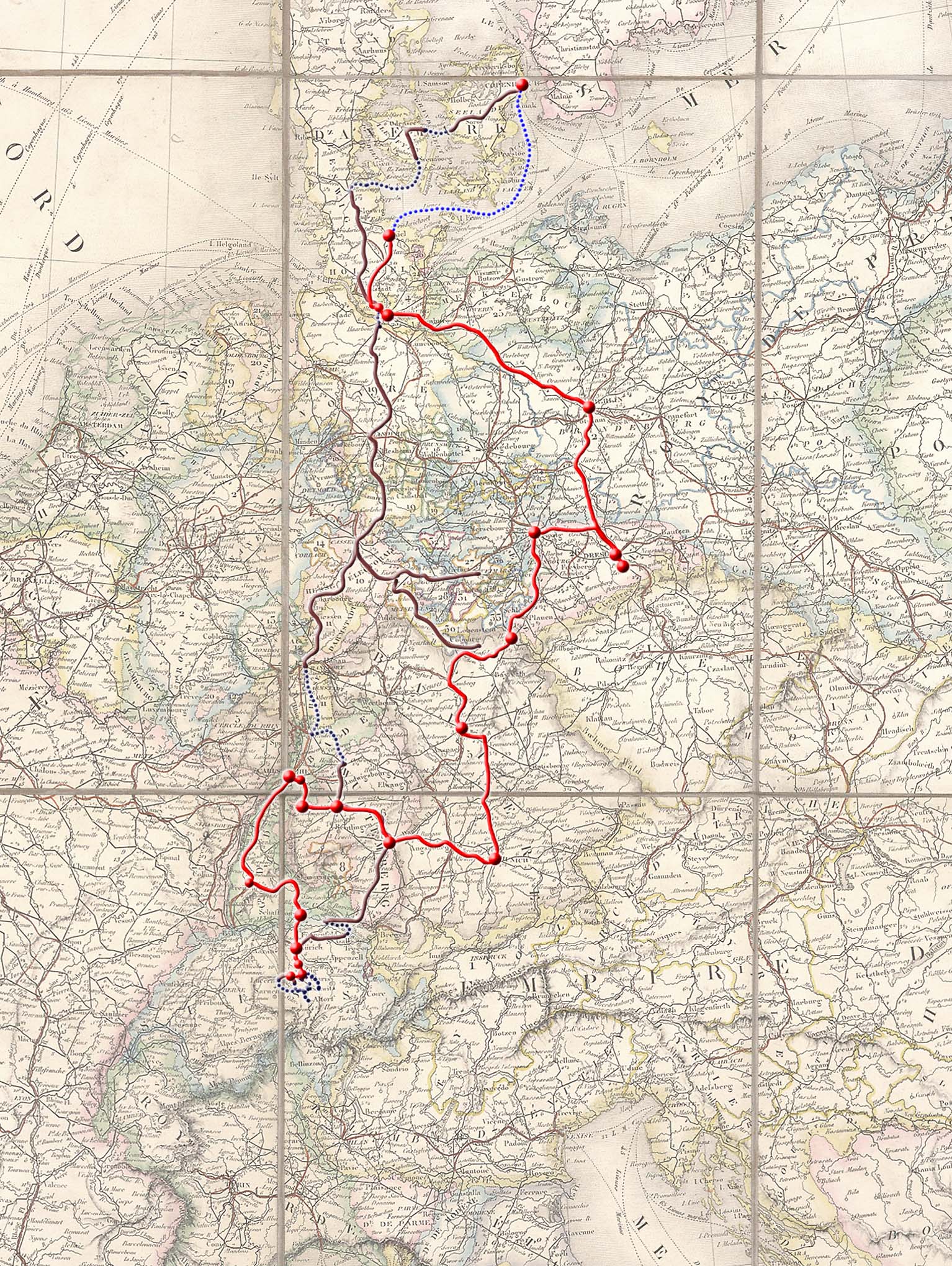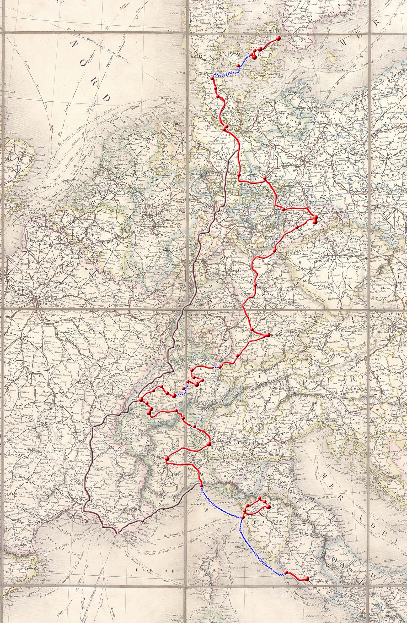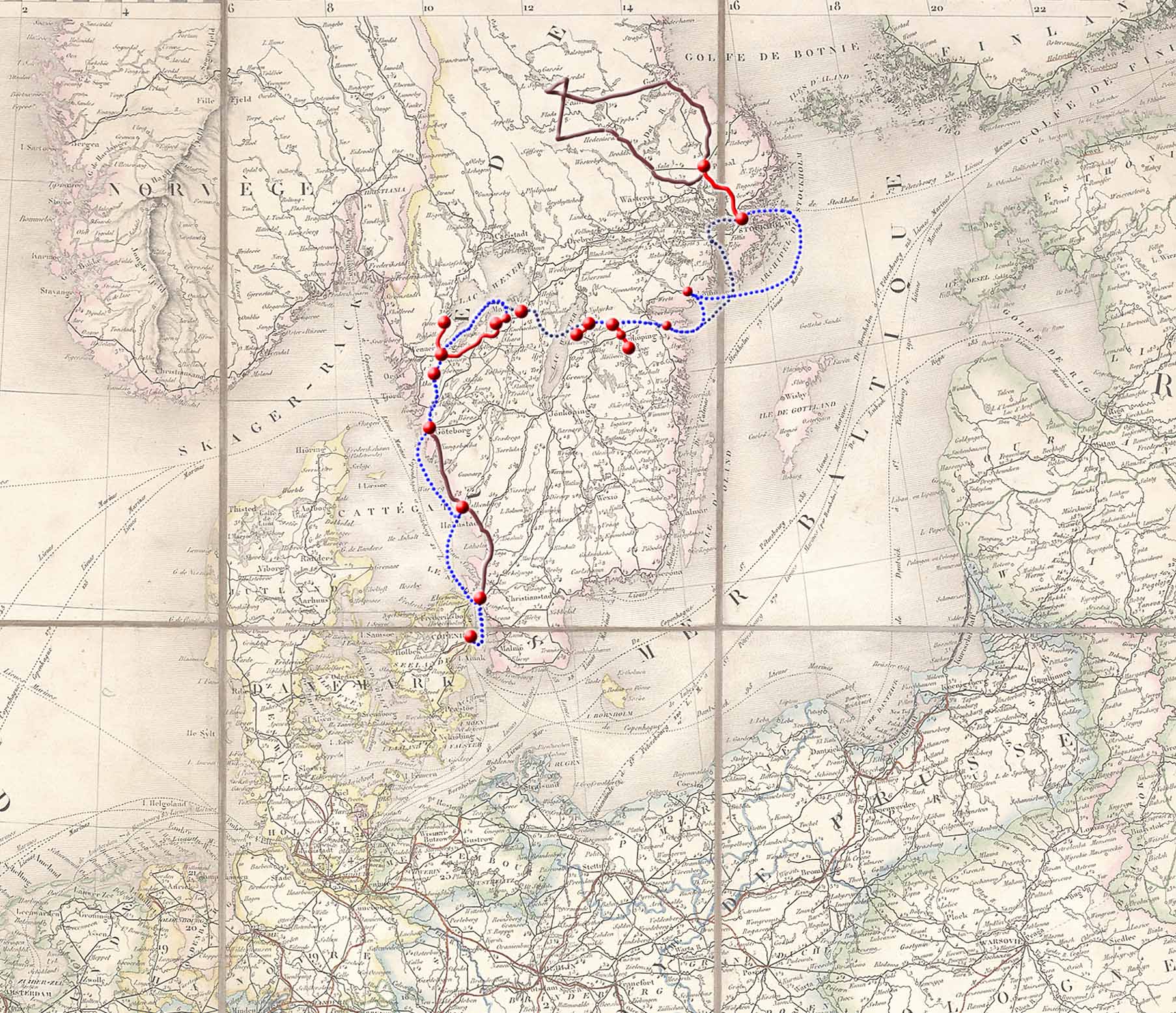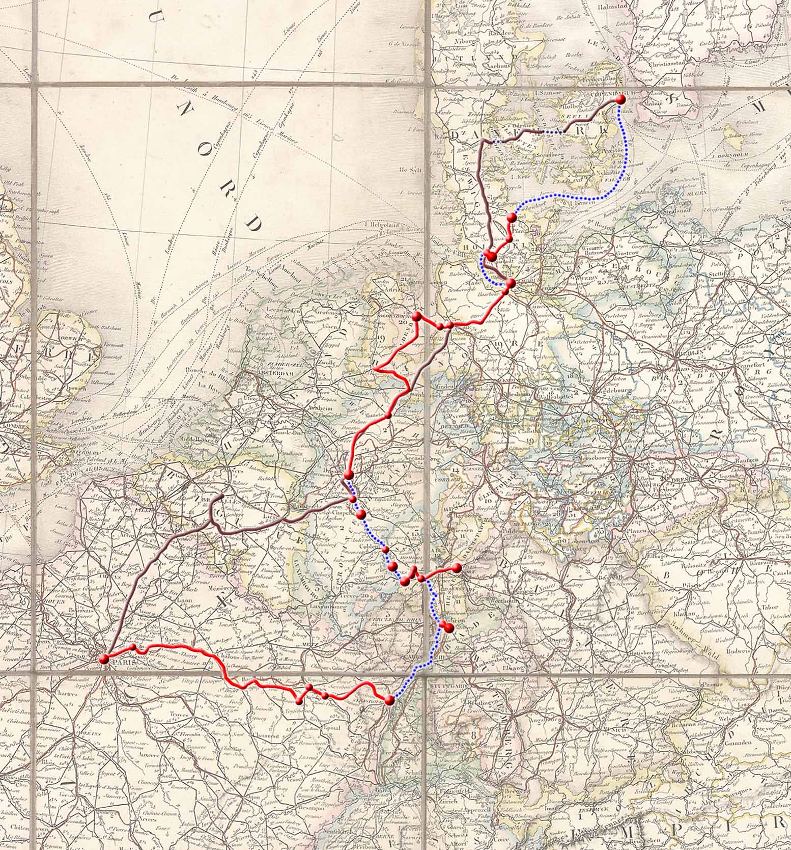 | 2 | Passing through | Dijon | Dijon | Dijon | 1833-08-16 | 1833-08-16 | 🐎 Postvogn | 47.3215806,5.0414701 |