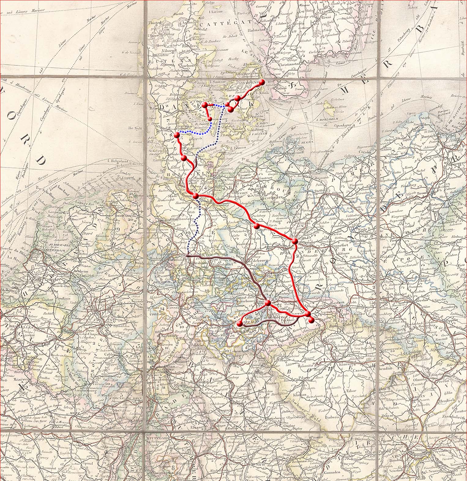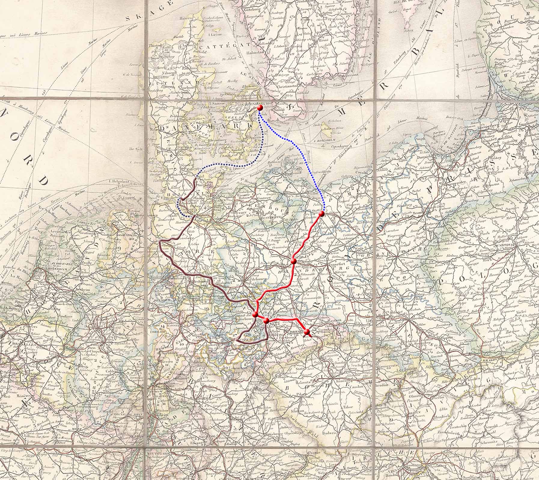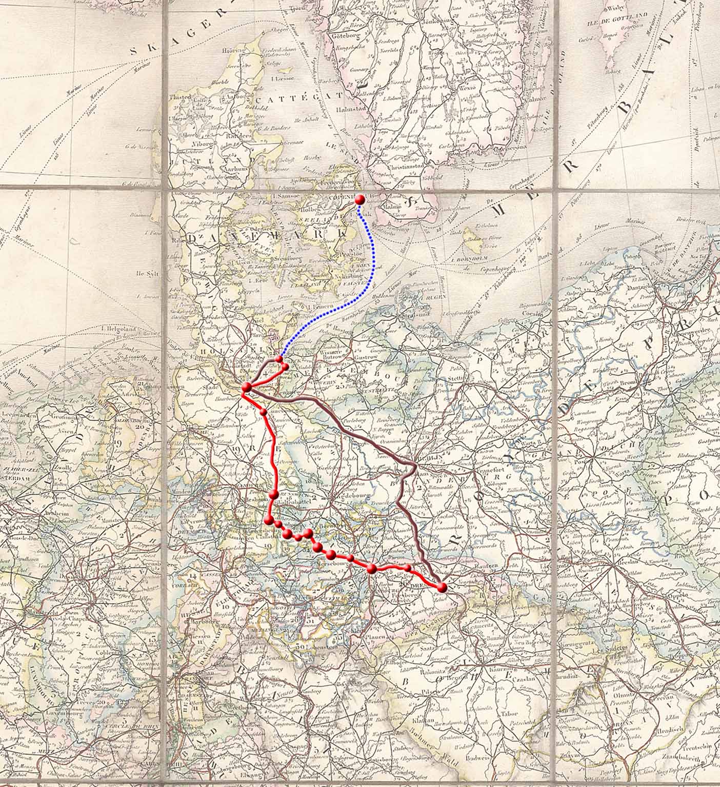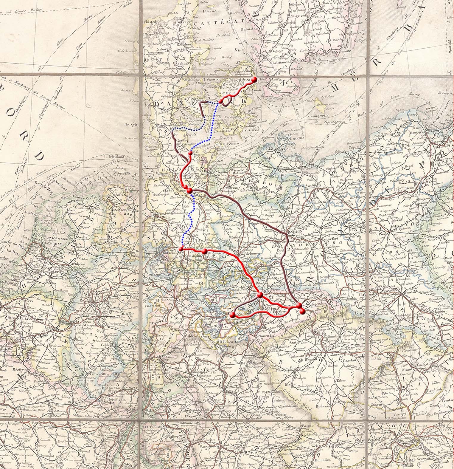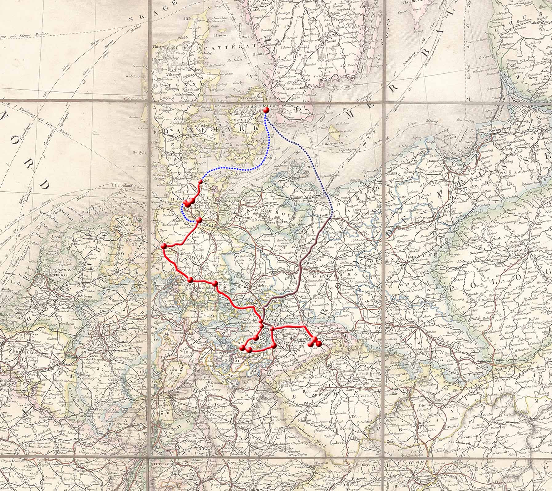 | 2 | Passing through | Göttingen | Göttingen | Göttingen | 1833-04-29 | 1833-04-29 | 🐎 Postvogn | 51.5328328,9.9351811 |