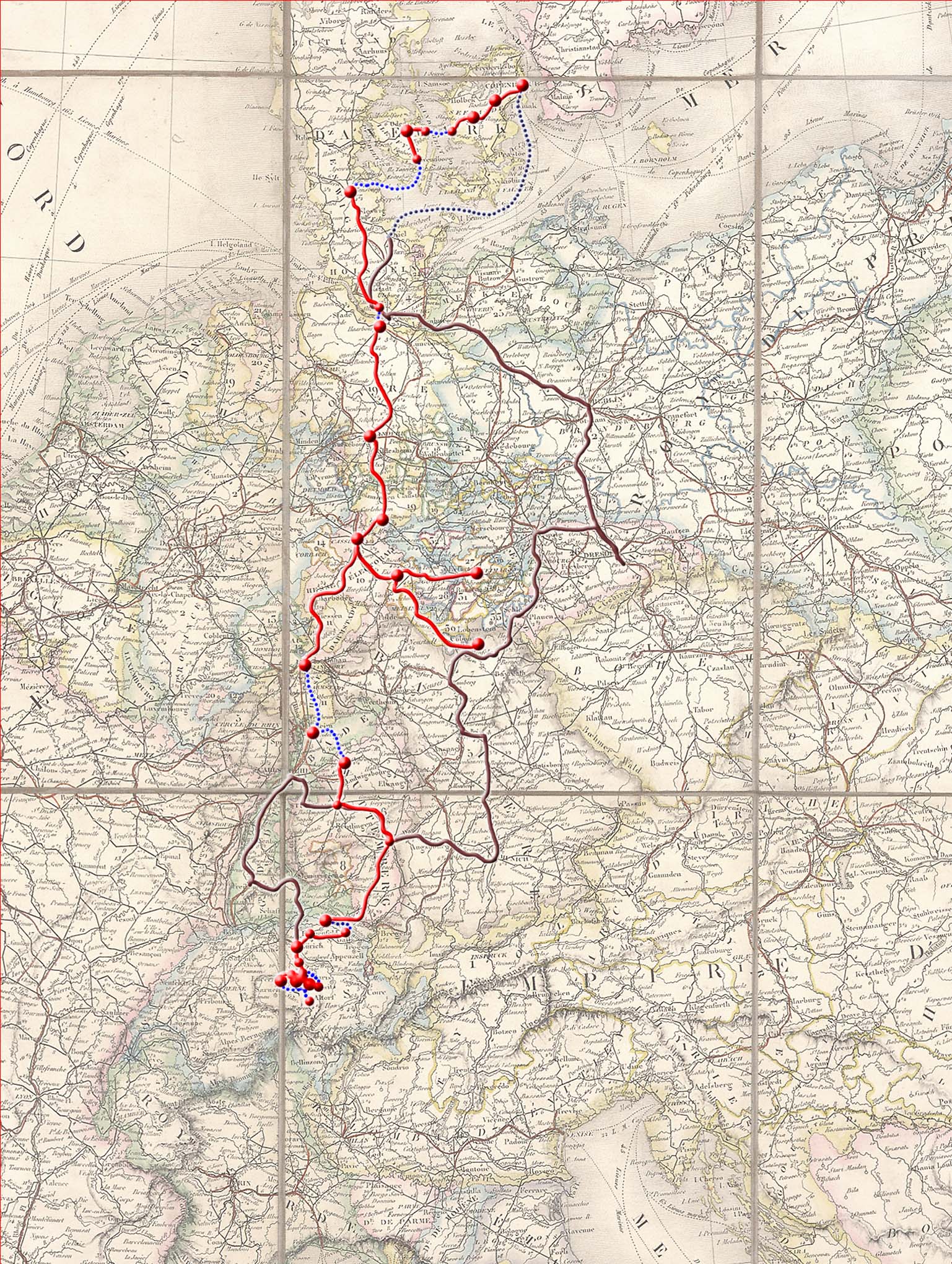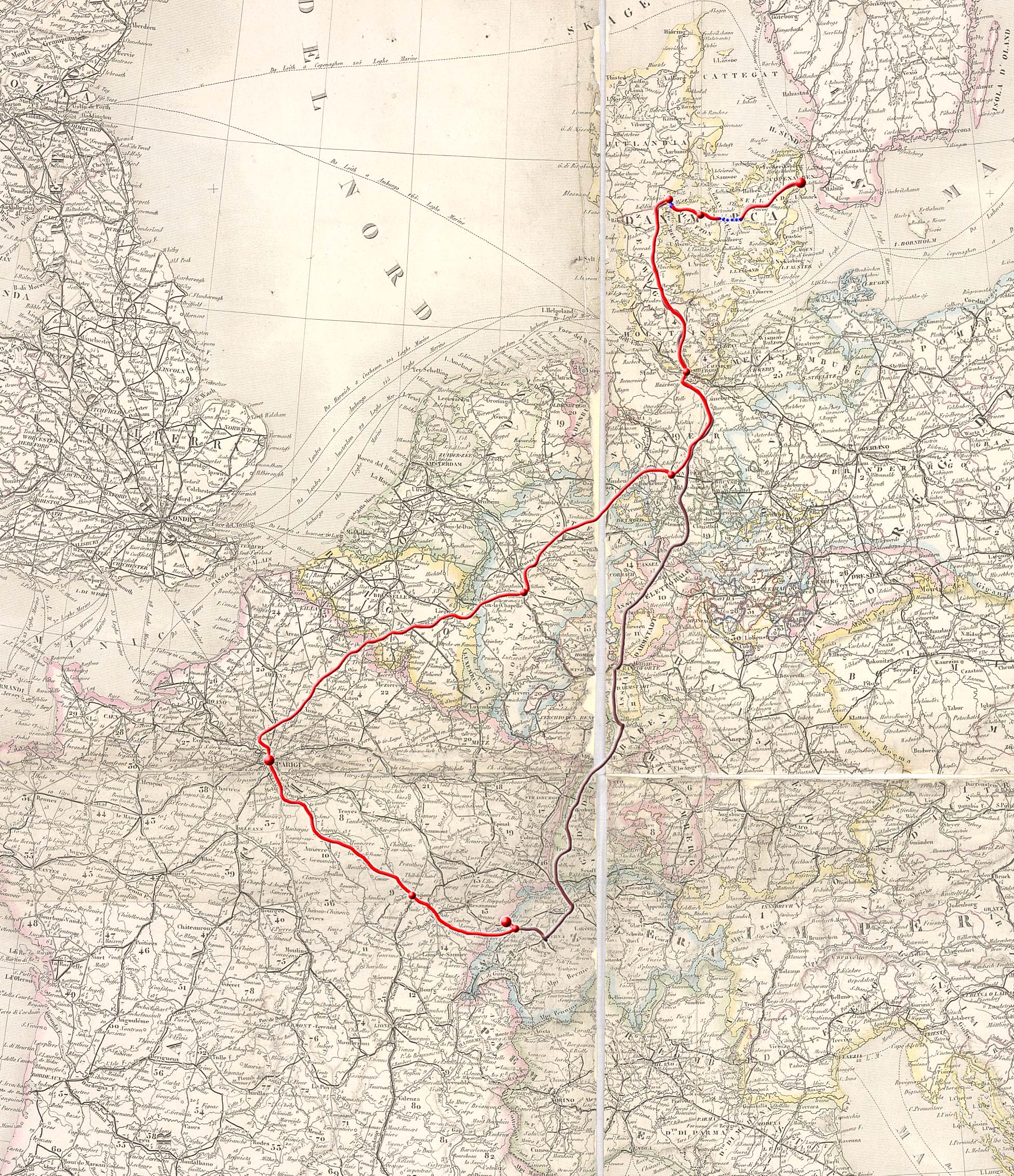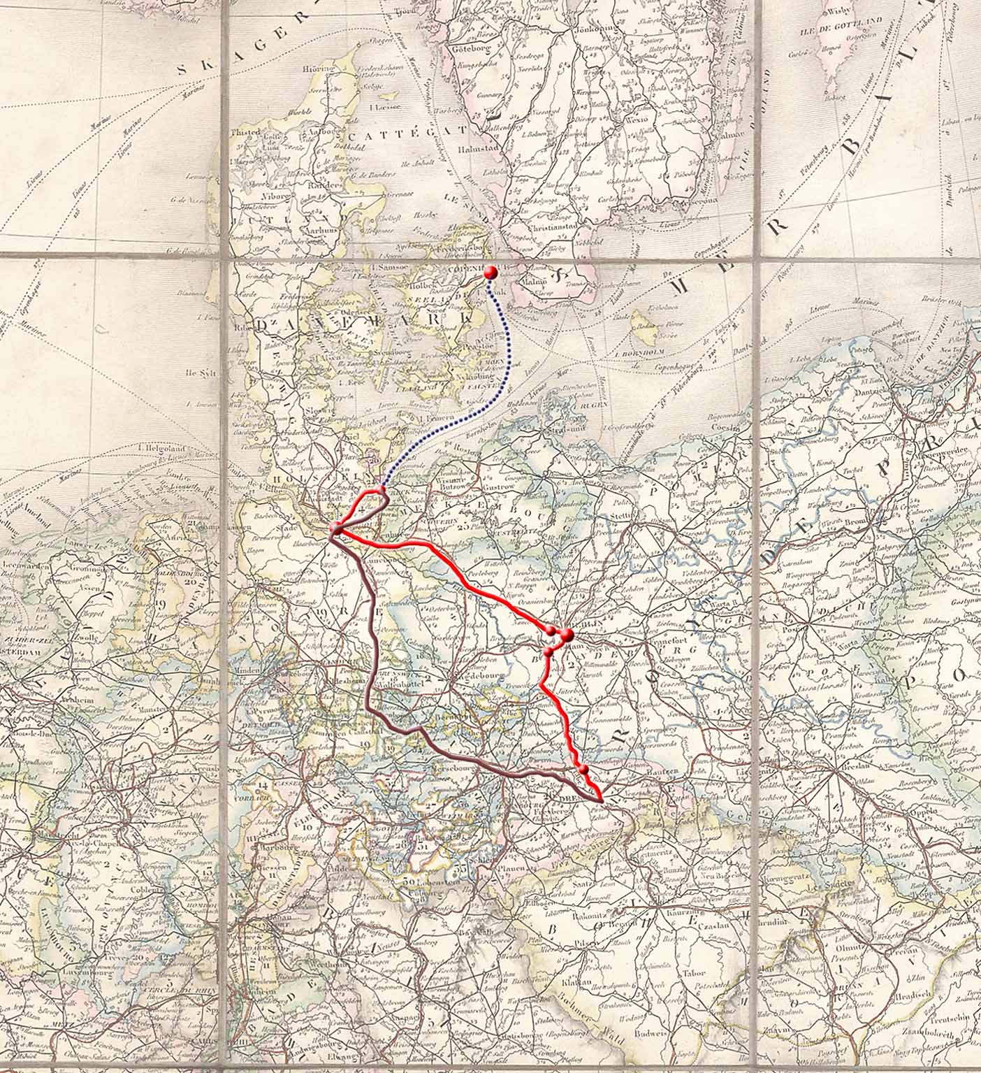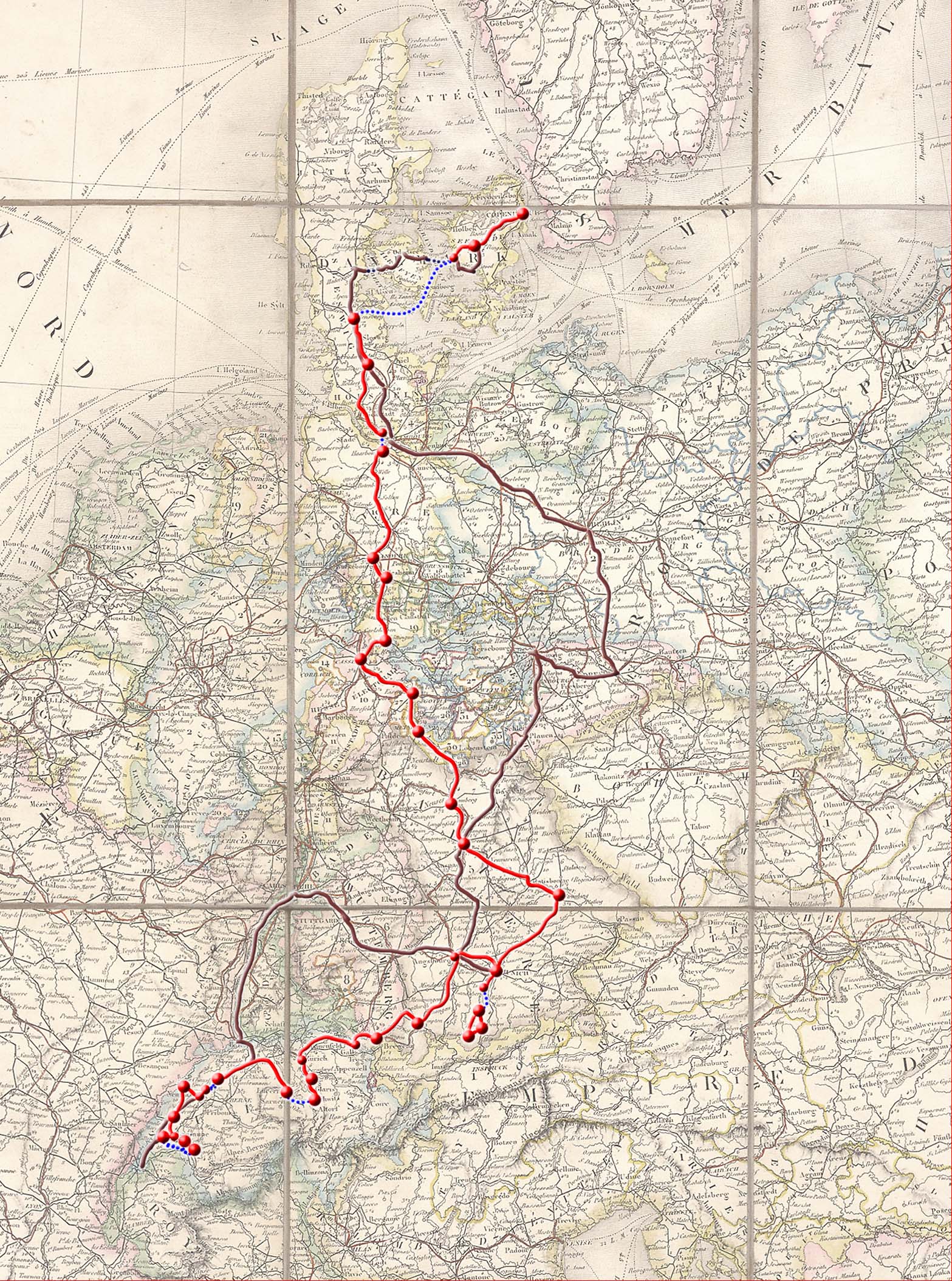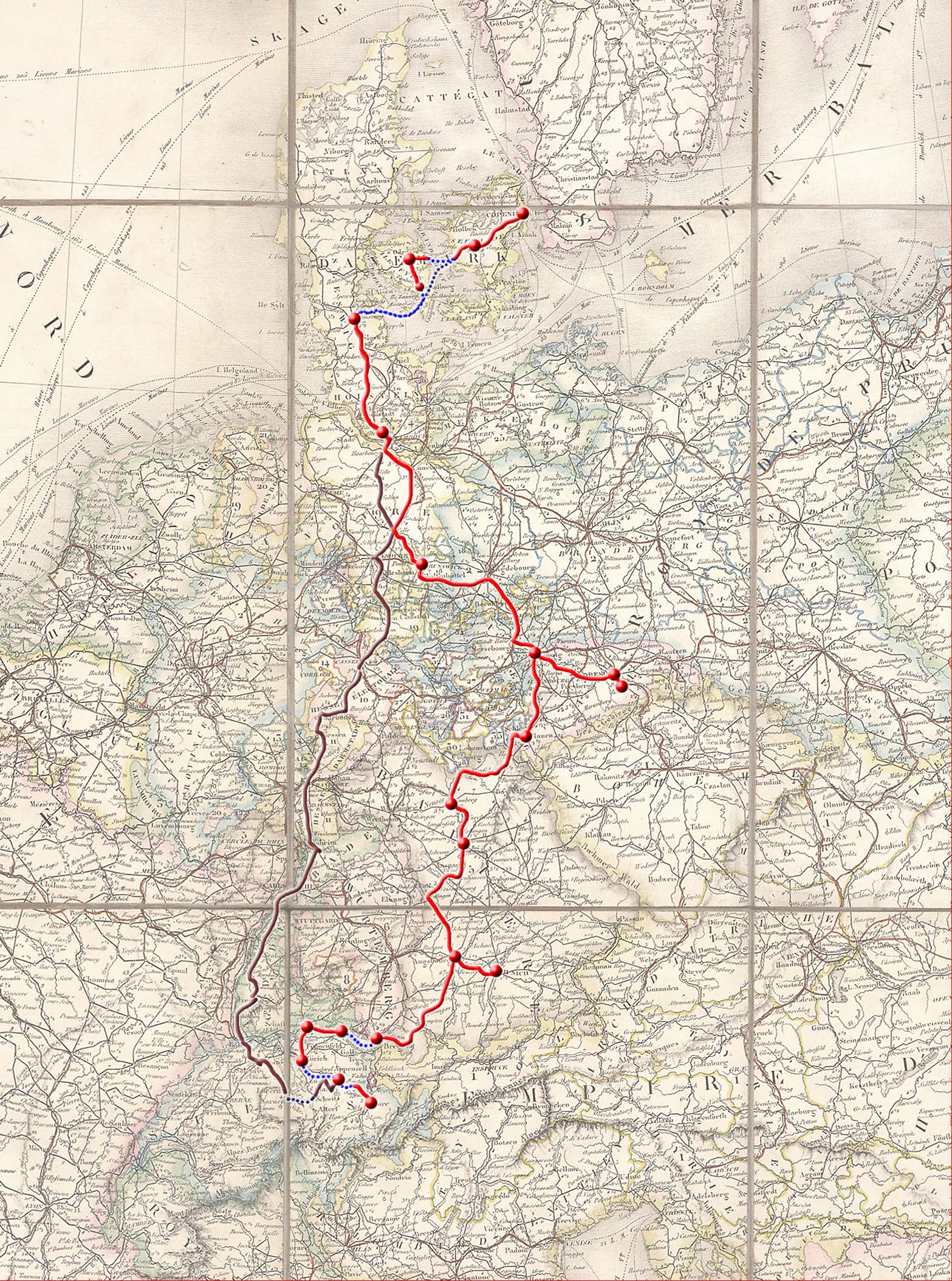 | 2 | Passing through | Göttingen | Göttingen | Göttingen | 1833-04-29 | 1833-04-29 | 🐎 Postvogn | 51.5328328,9.9351811 |