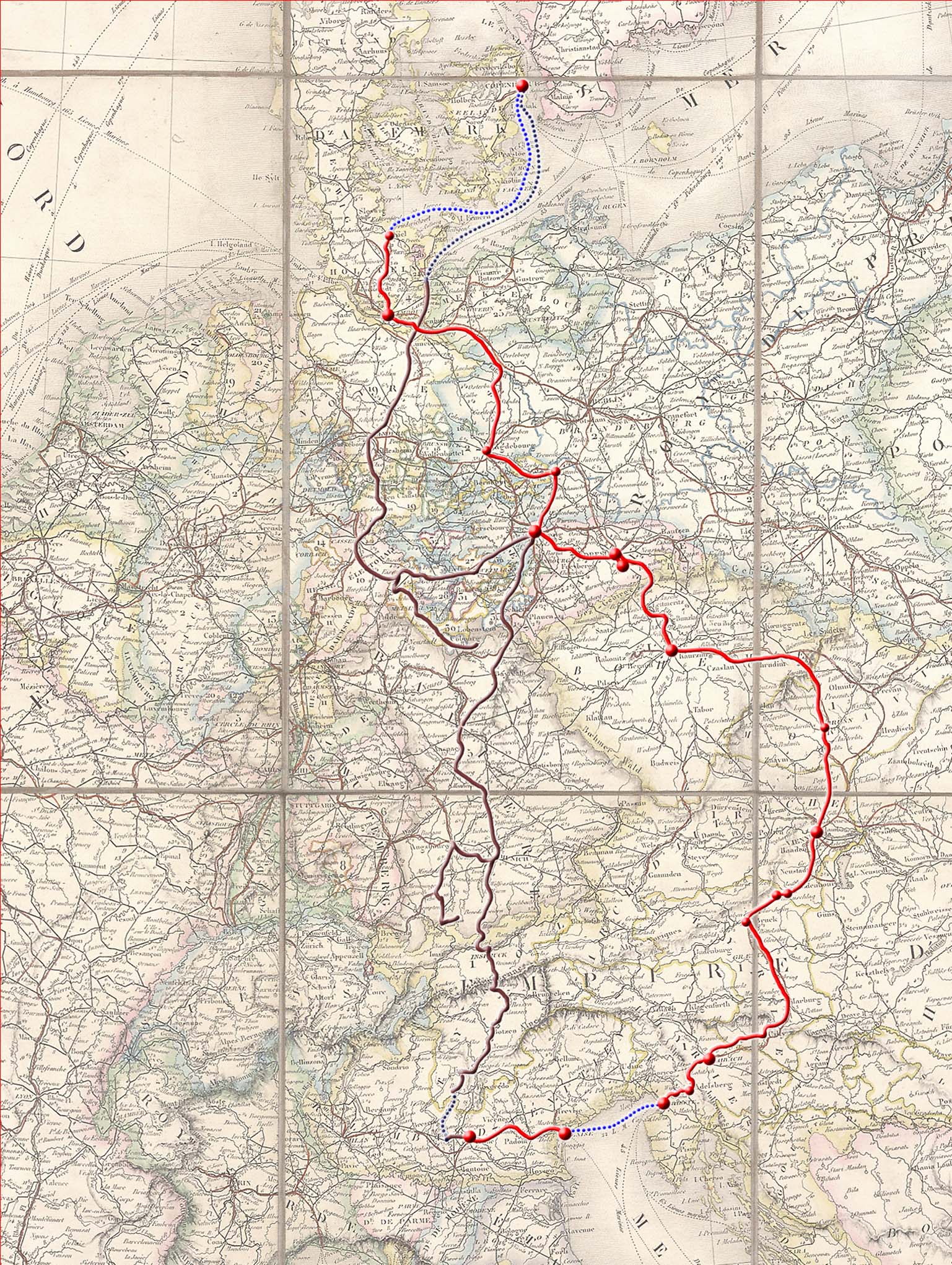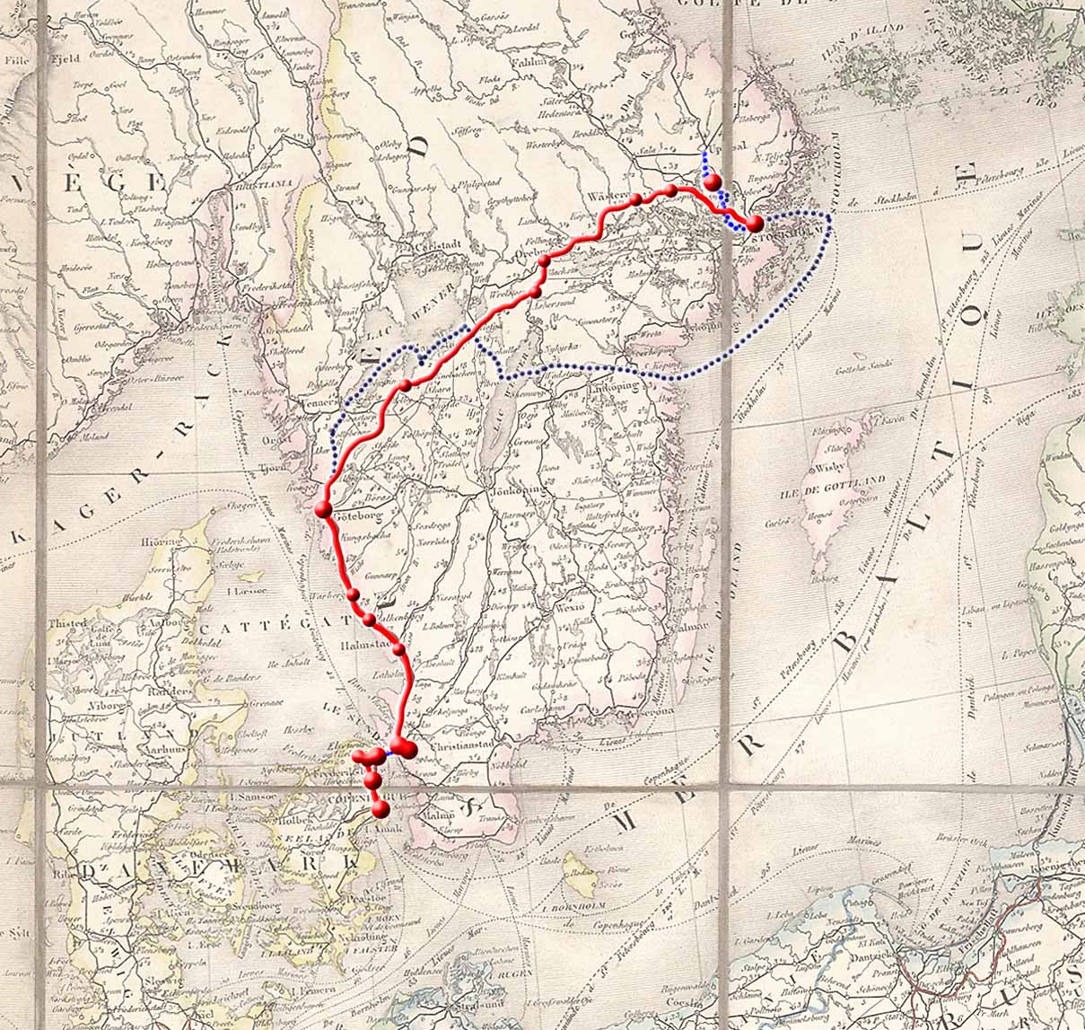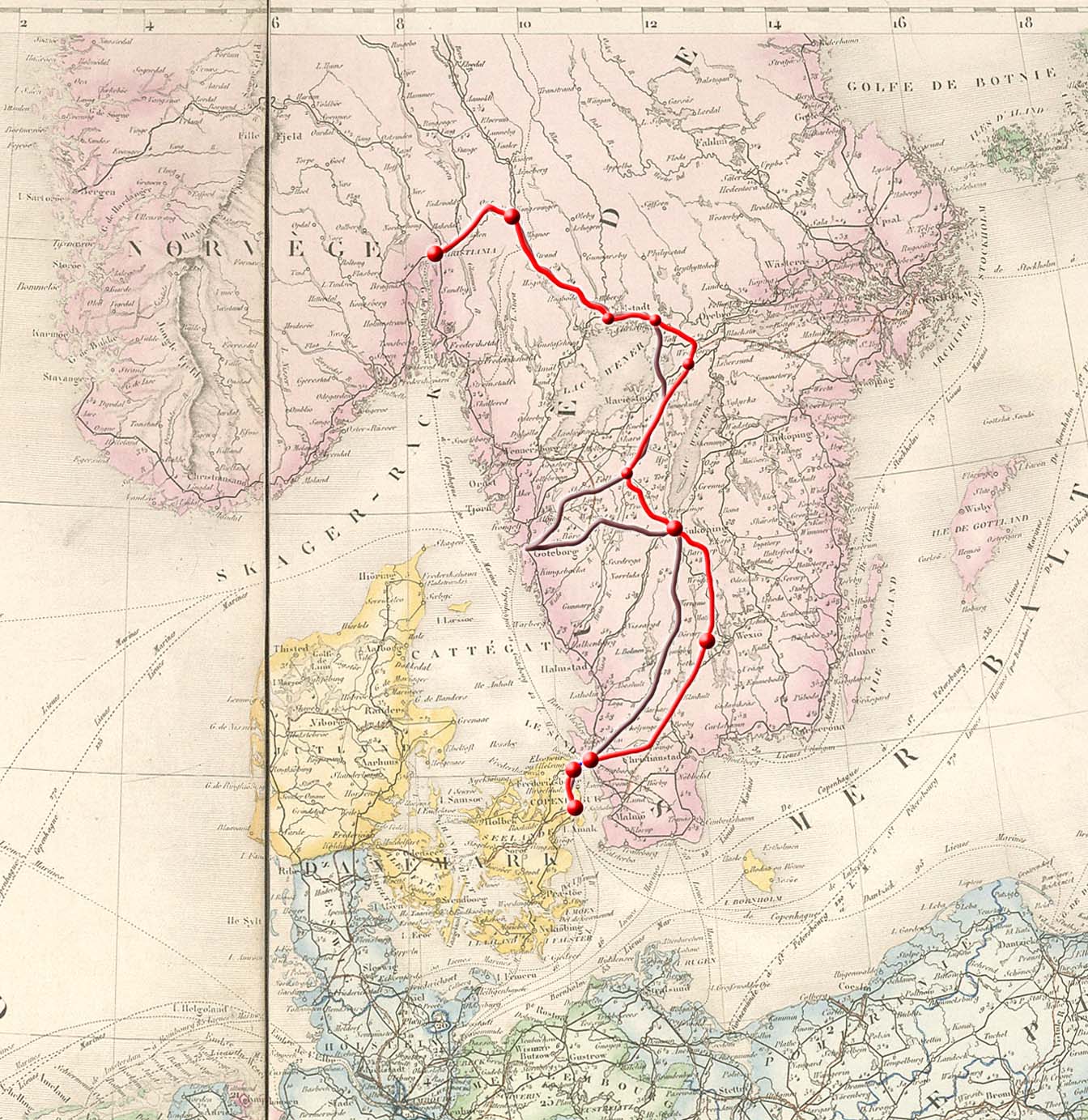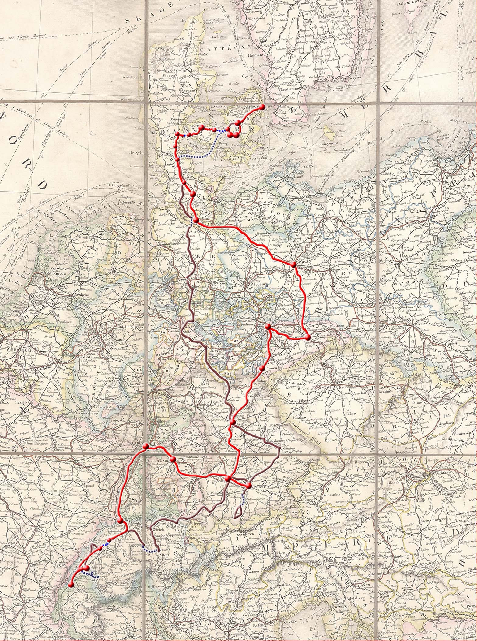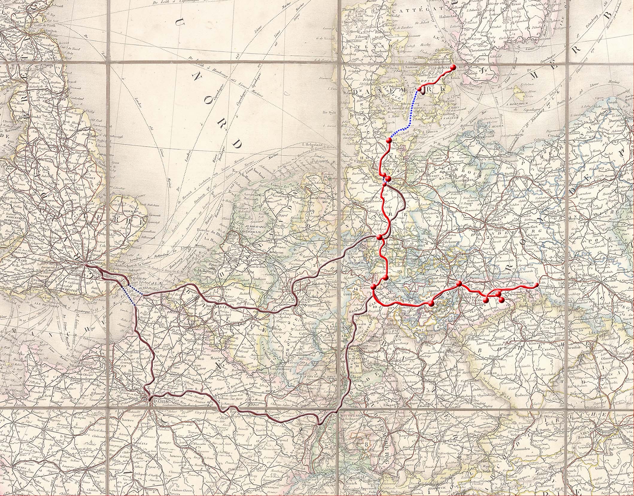 | 2 | Passing through | Göttingen | Göttingen | Göttingen | 1833-04-29 | 1833-04-29 | 🐎 Postvogn | 51.5328328,9.9351811 |