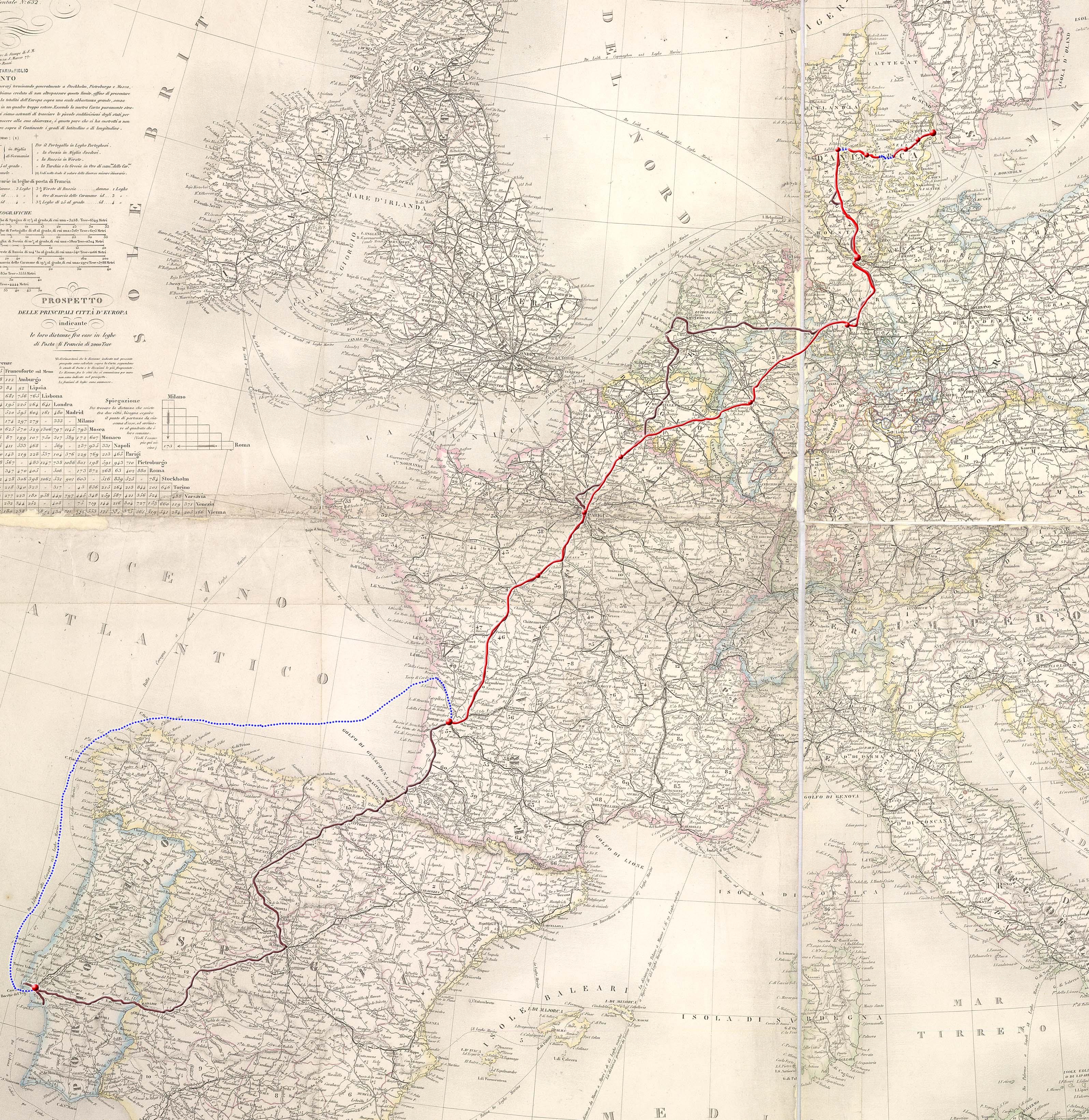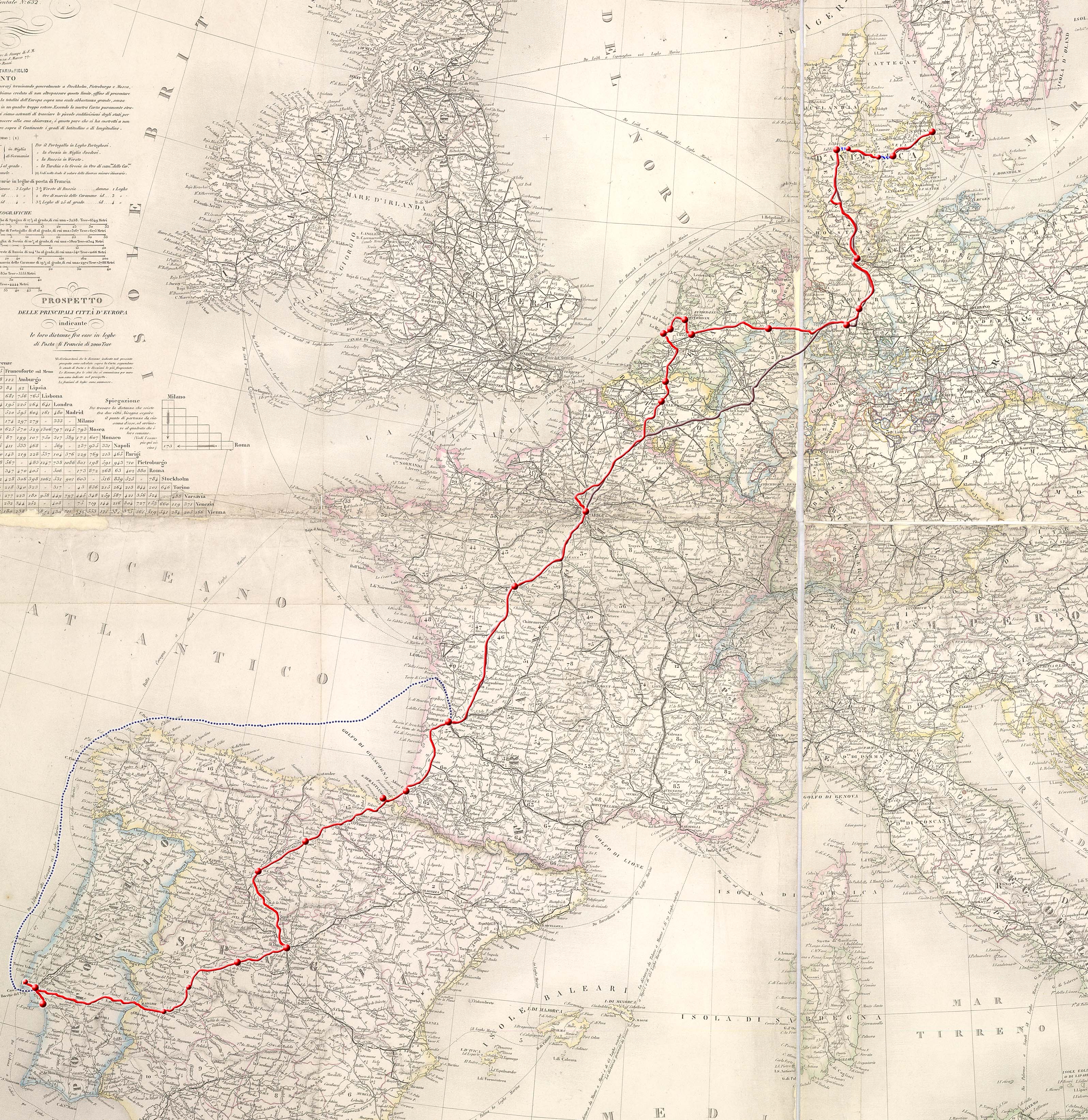 | 2 | Passing through | Marburg | Marburg | Marburg | 1833-05-22 | 1833-05-22 | 🐎 Postvogn | 48.183363,-0.790039 |
